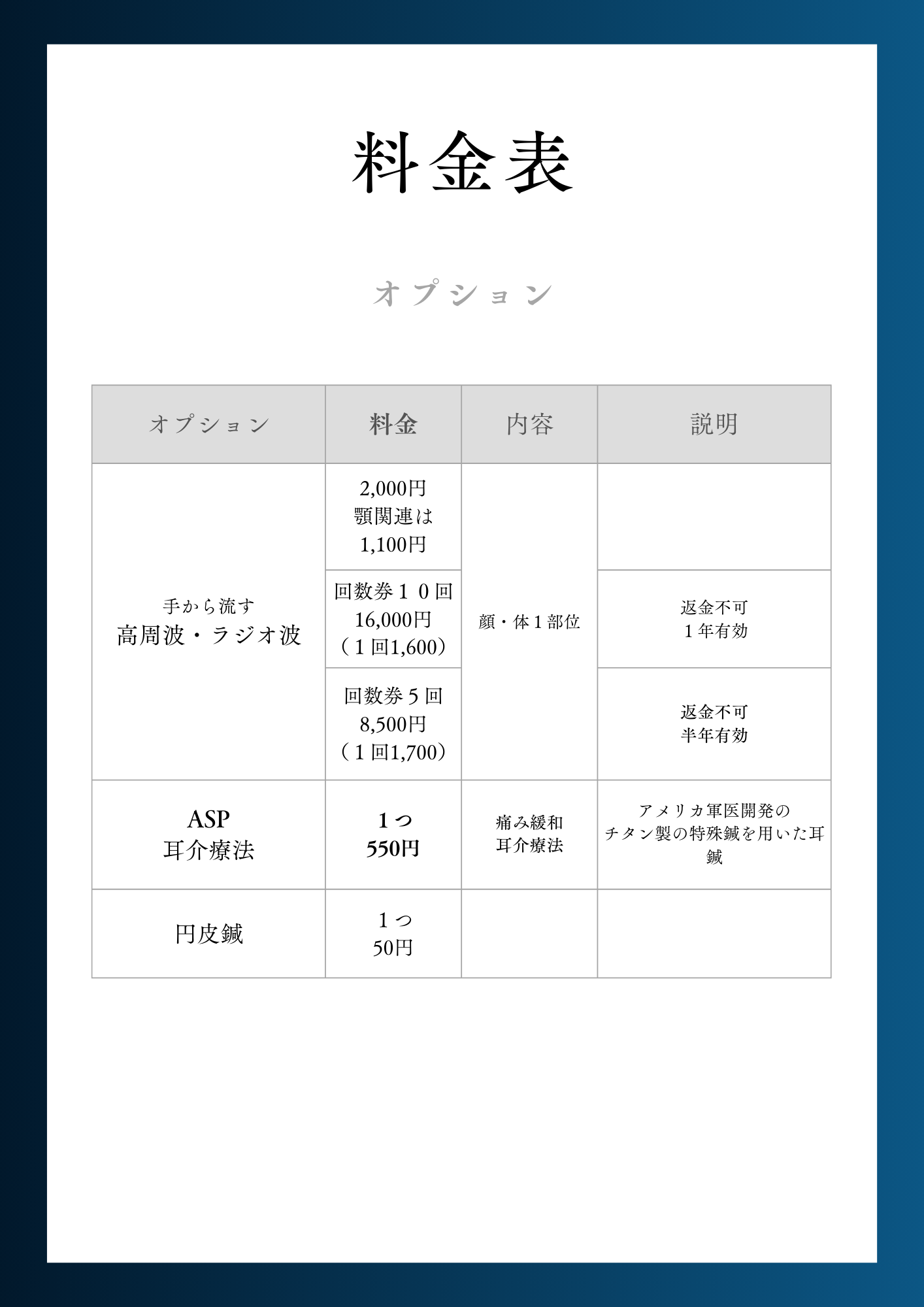 ※お求めに応じて、施術説明に時間を使う場合がございます。